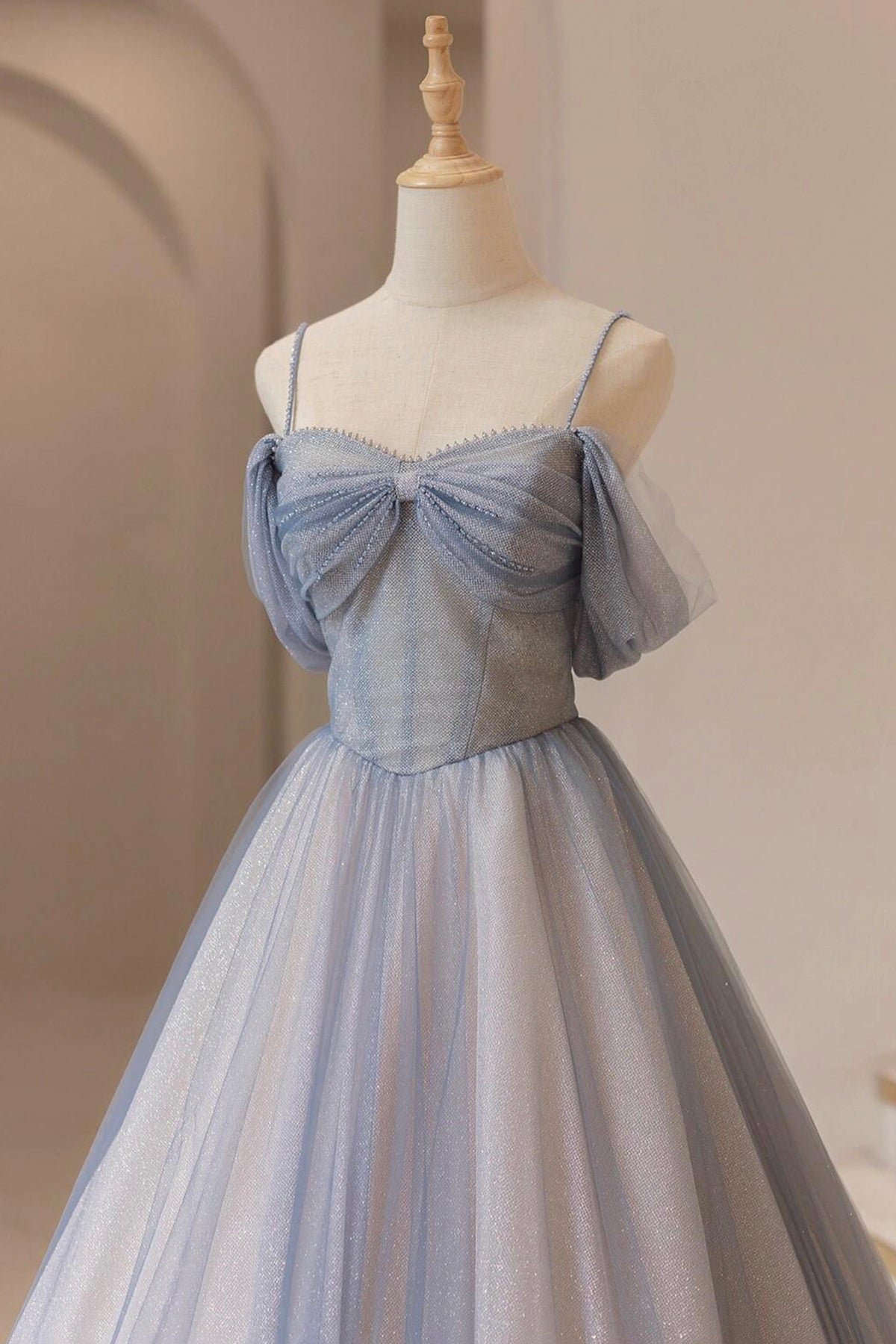 The Blue Spaghetti Strap Shiny Tulle Long Prom Dress is a stunning choice for your special evening. With delicate spaghetti straps and flowing tulle fabric, it embodies grace and style. The mesmerizing blue hue adds a touch of elegance, making it a perfect choice for prom or any formal event. Turn heads with this beautiful ensemble.